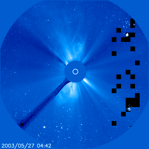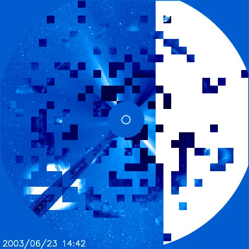 Here IT Comes ! http://www.godlikeproductions.com/ NASA is using pixel averaging software to "airbrush" Planet X out of LASCO C3. If you zoom into the "More LASCO C3" link: http://sohowww.nascom.nasa.gov/ you'll see the artifact left by this process. You'll see the artifact just outside the occulter disk at about the 10 O'clock position. [and from another] Some people here contend it's a shadow of Venus. Venus has a right side CCD spike of only 141 pixels, whereas this mystery object has a right hand CCD spike of 173 pixels. [and from another] The shadowy area does not move relative to Venus so this is not an artifact from Venus, no shadow. [and from another] I downloaded 500 gif files and animated a sequence. Playing 12 frmes a sec, its clear that the blob stays where it is for days. [and from another] The background noise/signals must be subtracted out of the lasco images to bring up the corona/features you see in the images. One subtraction takes 7 full days worth of averaged C3 images. The C3 detector is fine, I assure you. When the planets are out of the field and we get 7 days of images the quicklook program will build a better subtraction and those pixels will dissapear. Kevin Schenk, SOHO Mission, EIT and Lasco Operations, NASA-Goddard Space Flight Center, USA [and from another] If CCD memory is the problem, why wouldn't the image of Venus as it moved across the screen be a blur of successive white or dark images rather than the discrete image which this dark object and associated line bleed is. Noise on a moving object would create a blurred line, not what we see. [and from another] The residents of Earth also see something different, a bright orb much closer to the Sun than has been the case for some months. No longer far to the right, as the Earth scuttles back in a clockwise manner, a reverse orbit, but more directly in front of the Sun. As Planet X is coming closer to Earth, heading toward it, it become larger in view. In earlier days, this was a small object to remove from any SOHO picture it was captured in. Then it was out of view, too far to the right. Now, and increasingly during the coming months as Earth cannot move back in her orbit as freely as before, it will be an object seen in SOHO, unless removed. We predict that NASA will become more conscientious about removing Planet X from any images it releases, but as with former slips, their initial carelessness has gone on record! [Note: new ZetaTalk: GodlikeProduction Live, written Dec 2, 2006. By Dec 2, the dark shadow of a planet was removed from the C3 images. It had been there since 10/27, the latest archive provided, until 11/26, when noted, and was still there on 12/2, quite clearly, in C3. It did not show up in C2, but then neither Venus nor Jupiter did either. C2 captures a different emission than C3. See also Sign #1083 for a similar capture at the same location, on Aug 30, 2004!].