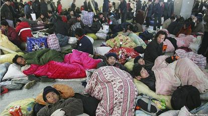 China's transport and energy systems have been caught in a perfect winter storm, with hundreds of thousands of people stranded during the peak travel season after train delays caused by heavy snow and power failures. The power crisis, the worst in China for many years, has been caused by an acute shortage of the supply of coal, the country's staple fuel. Brownouts have affected about half of China's 31 provinces and regions. The problem has been amplified by unseasonably large snowfalls in northern and central China. The Chinese media estimated that 150,000 travelers were stuck on Monday at the main rail station in Guangzhou, capital of southern Guangdong province, with hundreds of thousands more expected in coming days.
