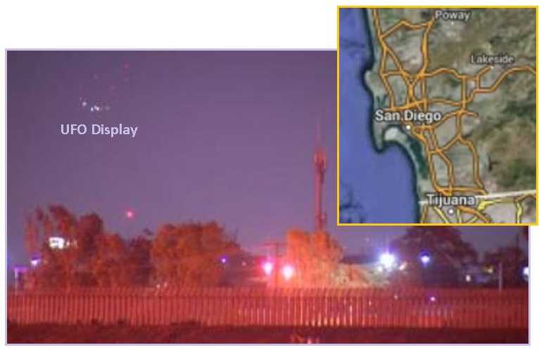 On May 1, 2015 San Diego received an amazing UFO display. This lingered for over a day, and received media attention from the Weather channel and San Diego NBC7 news, who took their own video of the incident. An Internet buzz resulted with much speculation on what the display represented.