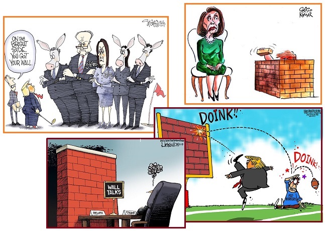 The failure of Congress to produce a budget that President Trump is willing to sign forced the US government into a Shutdown on December 18, 2018. This resulted in a Reduction in Force, a temporary layoff without pay for about 800,000 employees. The sticking point was funding for a wall, or fence, on the Southern Border with Mexico. Trump insisted on a modest $5.7 billion but Pelosi and Schumer were refusing even a penny, on principle. This despite Democrats willingly funding border walls in the past.