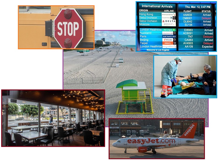 Comparing maps of the spread of Covid-19 since February 26 to March 16, one can see how in just under a month the world has been enveloped by this virus. Airplane travel is certainly to blame, as though air borne it does not reach more than 3-6 feet. The spread is exacerbated by the mild symptoms most have, some not even aware they are infected. The young likewise are resilient, thus small children can bring it home from school, unware. This explosion has forced a global shutdown, hoping to mirror the success that China has achieved by strict quarantines.