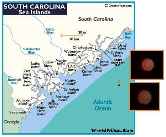 Mysterious red sphere spotted flying off SC coast https://www.drudgereport.com/... [and from another] https://www.greensboro.com/news/north_carolina/is-it-a-ufo-multiple-people-report-seeing-flying-red/article_9283f0dc-5c64-5e71-b4d7-e618776e0755.html Is it a UFO? Multiple people report seeing flying red sphere off SC coast. January 2, 2019 Other witnesses are stepping forward on social media to report they saw the same “beautiful red sphere” about 9:30 p.m. on Christmas Eve, including some who say they saw it in Ladson, North Myrtle Beach, Summerville and Edisto Beach.  Kiawah Island is just off the South Carolina coast, about 25 miles south of Charleston.  UFOs have been reported at least twice before off Kiawah Island since 2009, including multiple reports in 2015, and including a 2012 instance in which the object was described as “a very red round light”.