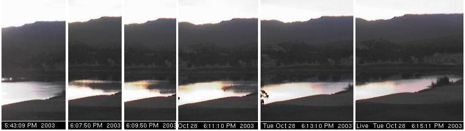 From New Mexico again! Sunset at 5:43 PM (time stamp) watch the reflection on the water from 6:07PM (time stamp). A white / yellow / red reflection that goes across the water. There is something other than the sun up there!