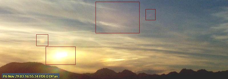 When I first saw this picture it struck me as odd, especially since I view this site on a daily basis. As you will note on Nov 22, the sun is not visible in the picture. However, what appears to be red corpus and dust cloud are. In previous photo's the sun is in the approximate same location, always out of frame. Now, just 6 days later from Nov 22 the sun is visible. Or, is it the Second Sun and the sun has already set or is setting? If you look closely, not only is the red corpus and dust cloud visible, but also another orb. The second sun showed up again Nov 30, only better this time!