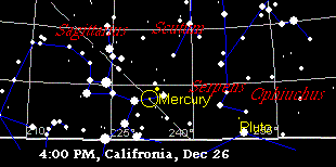 I took this at about 4 PM Dec 26 with the same filters over lens of Fugifilm FinePix 1300. Weirdness showing up in all pix! Donna At the 5 o'clock position, on the Serpens/Libra side of the Ecliptic. Nancy