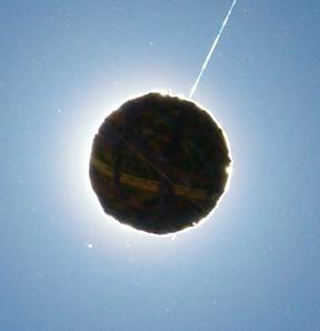 By hanging a small ball in front of the Sun, many of the moons are coming forward. The first was taken mid-morning March 9th in Arizona and should shows more of the moons. The second was taken mid-afternoon. Ken