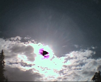 The sun finally peaked through the clouds yesterday [July 30] just long enough to snap a couple pictures. Looks like a red dust cloud to me. Mike This is the first photo of the predicted Fire Dragon! Nancy