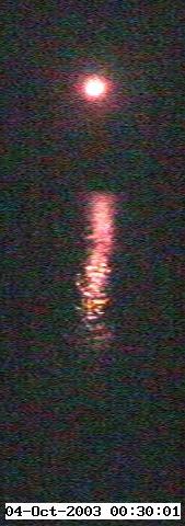 The following photos are from Bonaire South Beach Cam in the Caribbean taken on Oct 3rd. The object shows red dust around it and heading straight towards the horizon at 1 AM with no arc. The object also shows a red reflection in the ocean.