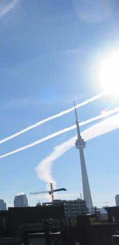 - There is a page on Rense.COM The photo was to show chemtrails over the city of Toronto, Canada. You can see Planet X behind the chemtrail at 7 o´clock and a [Mega-Monster] persona above the sun. [and from another poster] Took the picture to Photoshop. It seems to be legit. On the picture you can see the orb underneath the contrail. [and from another poster] There certainly are some extra orbs there. Seems to be right where the trails are being sprayed. There is also lens glare, as would be expected, but the orbs are distinct solid objects spearate from that. One more convincing photo.